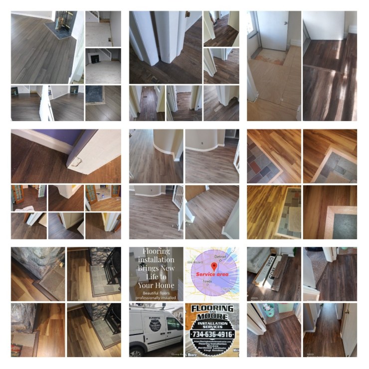 Waterproof luxury vinyl plank flooring on sale depending on how many square feet you buy! Hardwood grain embossing and HiFi Imaging give this vinyl flooring the feel and character. A 100% waterproof construction, 50% stronger GeoCore stability, Limestone and vinyl mix together making it stronger, improved rapid locking system and 20 mil commercial wear layer guarantees commercial-grade performance. Padding attached 11 colors available. Luxury vinyl plank flooring is very durable and 100% water resistant. Making it a great choice to put in basements, laundry rooms, kitchens, bedrooms, bathrooms, living room or the whole house. Flooring And Moore Installation Services text or call 734-636-4916 to schedule your Free estimate. We install lvp , luxury vinyl plank , lvt , evp , laminate , hardwood , engineered hardwood and bamboo. We will install flooring you supply or you can buy some luxury vinyl plank from us. Other services offered like floor leveling , demo , trim and door installation , decks and Moore! Financing available. We service the Detroit Metro / Downriver area from Ann Arbor to Detroit down to Toledo Monroe County Michigan Wayne County Michigan.